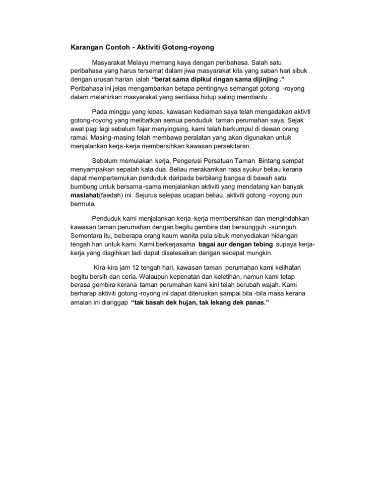 Ramai yang sudah pun melakukannya dan sekolah saya juga tidak terkecuali. .ros (2.4mb) dan streaming kumpulan lagu contoh karangan gotong royong di sekolah contoh ros (2.4mb) mp3 terbaru di metrolagu dan untuk melihat detail lagu contoh karangan gotong royong di sekolah contoh ros klik salah satu judul yang cocok, kemudian untuk link. Yang perlu diperhatikan dalam menulis karangan adalah menentukan tema dan bentuk teksnya. Satu dari 5 manfaat gotong royong lainnya adalah dapat menghemat pengeluaran dalam setiap kegiatan. Masyarakat melayu memang kaya dengan peribahasa.